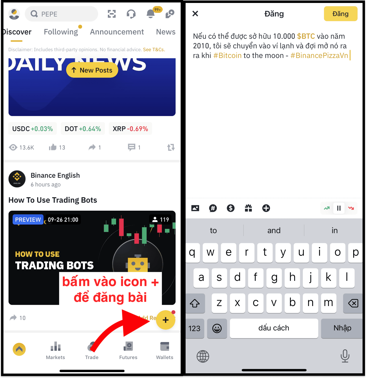 ⭐ Postez un article avec #BinancePizzaVN