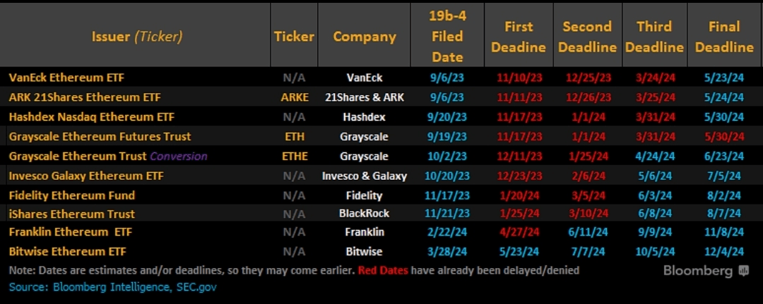 🔸Les analystes s'attendent à ce que la SEC se prononce sur ce que l'on appelle les 19b-4 – des modifications de règles proposées déposées par les bourses au nom des émetteurs – avant de se prononcer sur les déclarations d'enregistrement S-1 pour chacun des fonds prévus. Il pourrait y avoir un délai entre les deux actions, qui sont toutes deux nécessaires pour que les produits arrivent sur le marché.