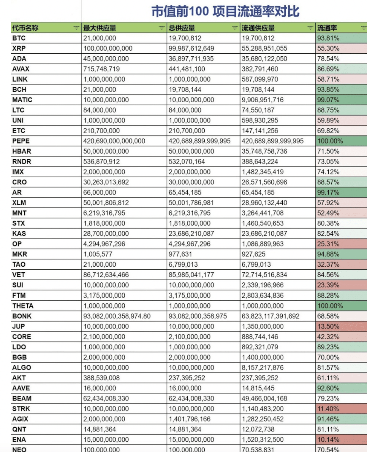 Le modèle à faible circulation et à FDV élevé a été utilisé à l'origine par FTX/Alameda pour constituer d'énormes actifs de réserve, et il est désormais devenu la méthode dominante sur le marché. Selon les statistiques, au 21 mai, il y avait 7 projets dans le top 100 en termes de valeur marchande avec des taux de diffusion inférieurs à 50 %, et beaucoup d'entre eux avaient des taux de diffusion encore inférieurs à 20 %. Les cryptomonnaies à faible circulation sur le marché représentent 21,3% du top 300 par capitalisation boursière. Ce phénomène est principalement dû à la prospérité du marché des capitaux Web3, à la rareté des projets de haute qualité et à la croissance de la demande du marché.