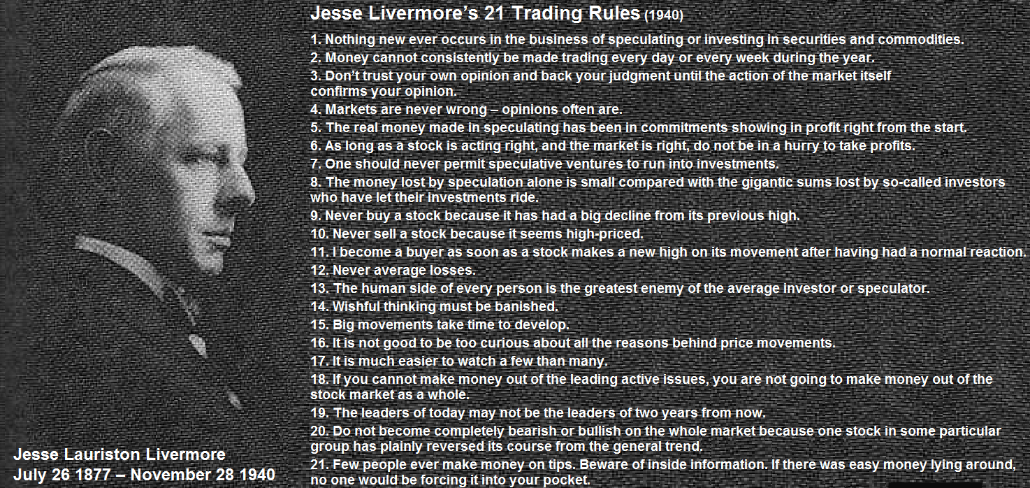 💹Les 21 règles de trading de Jesse Livermore :