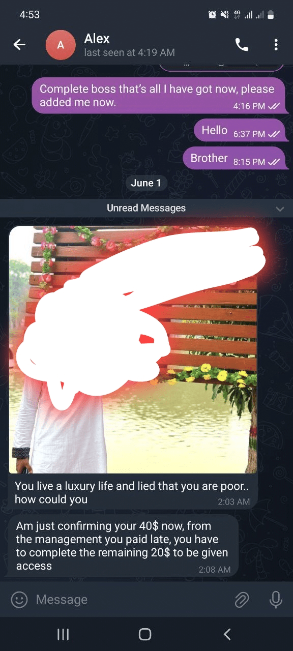 Il a envoyé tout son argent et a ensuite reçu une autre réponse au bout de deux jours.