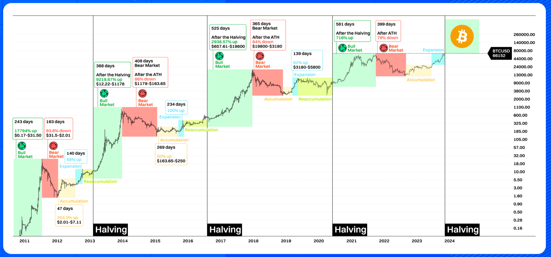 Le système de marché du Bitcoin suit des cycles de réduction de moitié.