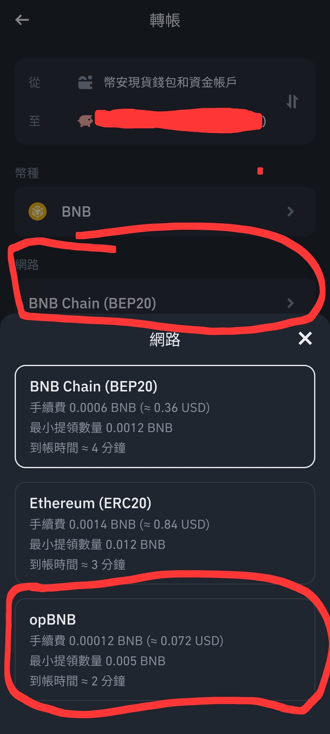 5️⃣Dans la colonne réseau, sélectionnez le réseau opBNB à transférer, suivi de l'opération de vérification de sécurité, et le transfert sera terminé rapidement une fois terminé.