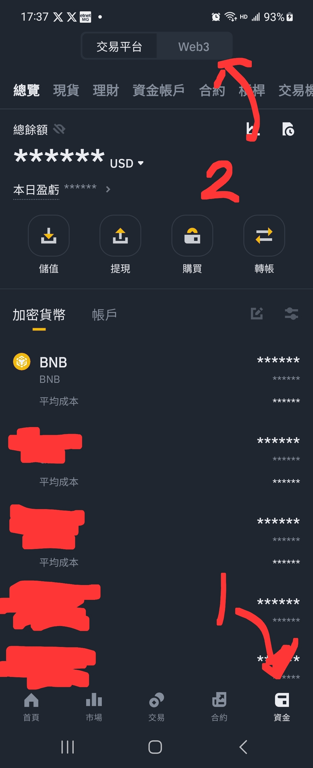 2️⃣Cliquez sur Fonds en bas de l'application Binance pour trouver Web3 sur la page, cliquez pour entrer