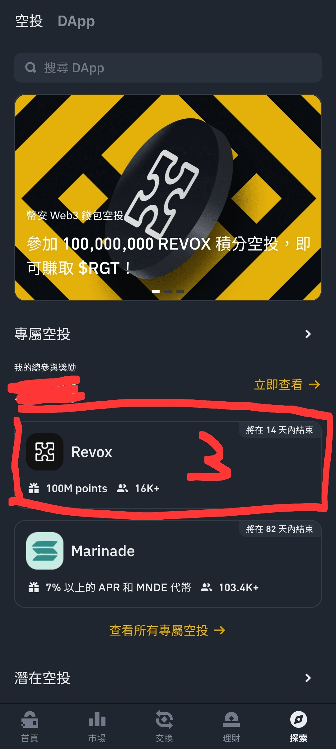 3️⃣Allez sur la page de l'événement, recherchez l'événement Revox airdrop et cliquez pour accéder à la page de l'événement