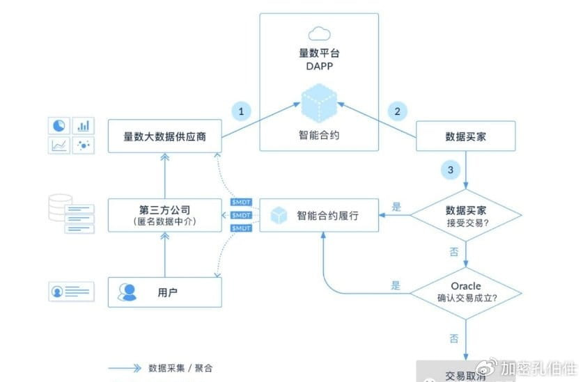 MDT utilise des contrats intelligents pour automatiser et gérer les transactions de données. Les contrats intelligents sont des programmes automatisés déployés sur la blockchain qui effectuent automatiquement des opérations prédéterminées lorsque des conditions spécifiques sont remplies. Ces contrats garantissent que les fournisseurs de données peuvent recevoir les récompenses en jetons MDT correspondantes immédiatement après avoir fourni les données, et que les consommateurs de données peuvent également s'assurer que les données qu'ils achètent sont éligibles.