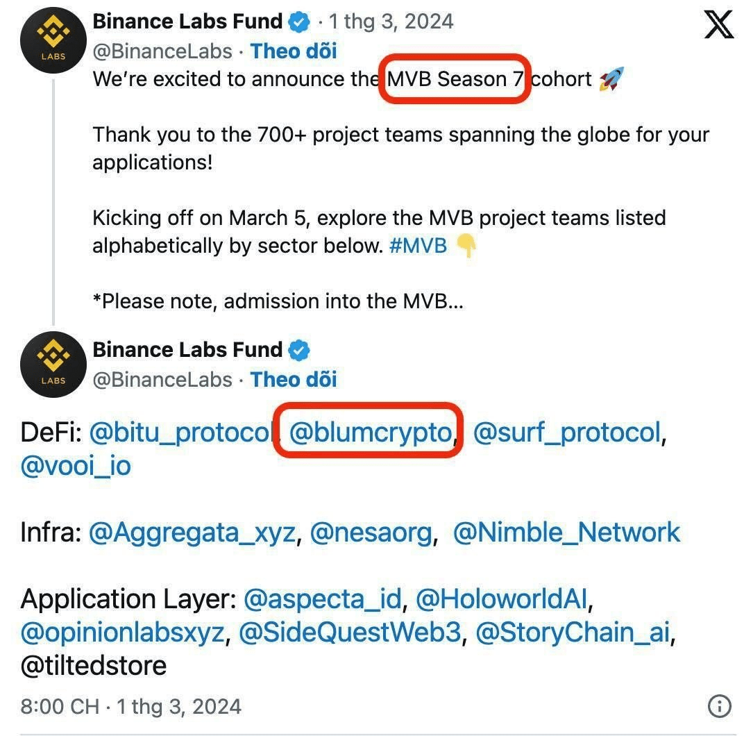 Binance Lab berinvestasi di Blum ๐ฅ๐...