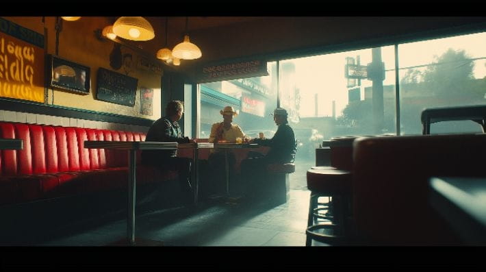 Kayu berderit di bawah setiap langkahku, suara hampa dan hampir seperti pemakaman, bergema di udara tebal bar. Setiap kemajuan terasa semakin sulit, seakan-akan atmosfer di sekitarku semakin berat, menindas, perlahan-lahan menekanku. Aku tenggelam dalam senja yang suram ini, di mana bayangan dan cahaya seakan-akan berjuang untuk mendominasi ruang, tanpa ada yang benar-benar menang. Udaranya memiliki konsistensi yang aneh, hampir bisa diraba, semacam selubung tak kasat mata yang membebani kulitku, seperti mimpi yang tidak bisa kita lepaskan.