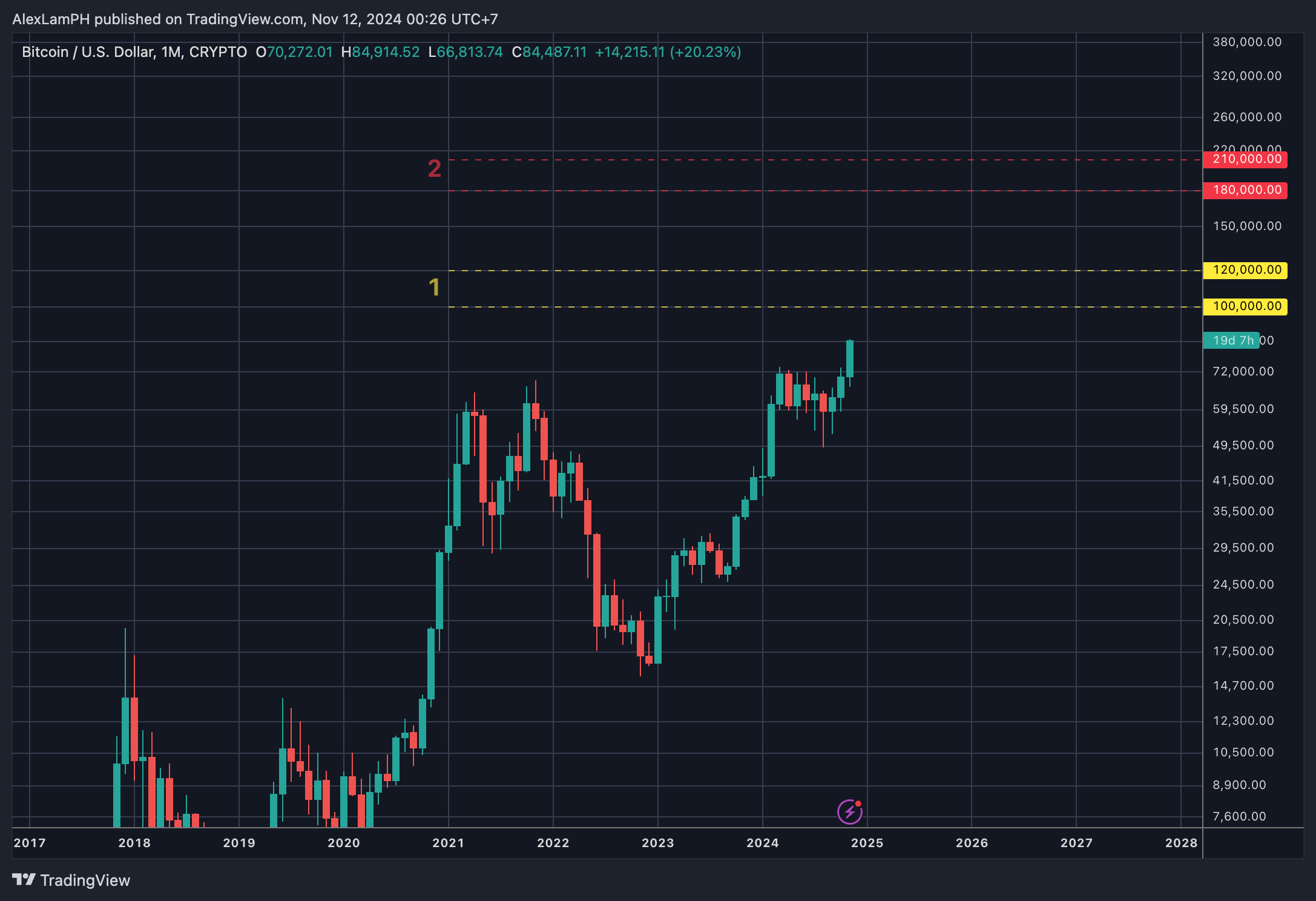 Mendaki ke $200,000: Setelah mendukung sekitar $100,000, Bitcoin bisa membuat jalannya ke $200,000. Saya melihat ini sebagai puncak potensial dari siklus saat ini. Pada level ini, kami mungkin melihat pengambilan keuntungan yang meningkat dan konsolidasi, mencerminkan sentimen pasar pada tingkat tertinggi sepanjang masa.