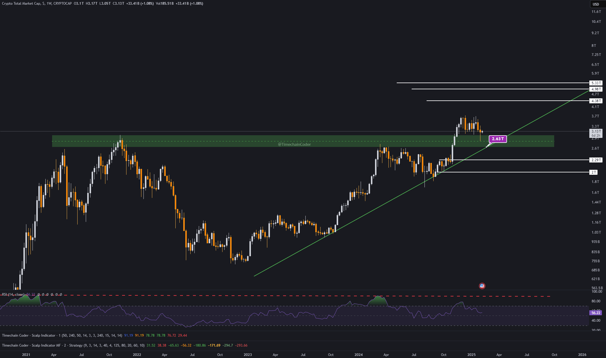 Normalnya, jika kita tidak melihat pemulihan segera dengan pantulan V besar setelah penurunan yang dalam seperti itu, pertama bagian tengah sumbu, kemudian ujung terendah sumbu dapat menjadi target lagi. Penting untuk mengikuti jalannya di sini. Tetap di atas kotak hijau pertama menargetkan kotak hijau di tengah, kemudian kotak merah di atas, tetapi jika kita akan melihat peristiwa likuidasi lainnya sebelumnya, penting untuk mengikuti level yang saya tandai pada sumbu dan tidak melihat penutupan lilin harian di bawah $2.80T.