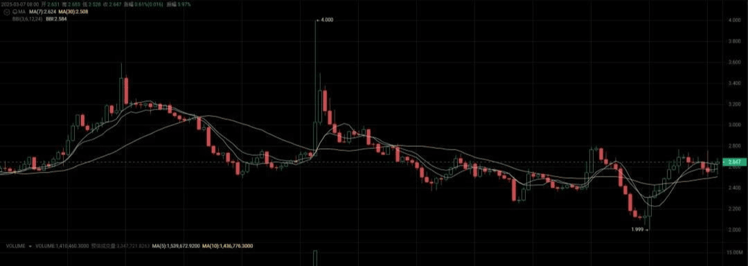 JTO menunjukkan performa yang mengesankan di bidang DeFi, terutama melalui kerja sama dengan Kamino Finance, total deposit telah melebihi 1 juta SOL, meningkat 43%. Saat ini harga JTO adalah 2,64 dolar AS, meningkat 13,28% dalam 24 jam terakhir. Kapitalisasi pasarnya mencapai 813 juta dolar AS, dan likuiditasnya sangat kuat, menjadi pilihan yang patut diperhatikan oleh investor.