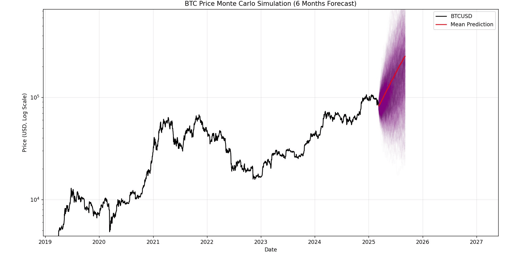 Mark Quant, seorang peneliti kripto, melakukan simulasi Monte Carlo untuk menganalisis harga Bitcoin, memberikan proyeksi enam bulan untuk aset digital.