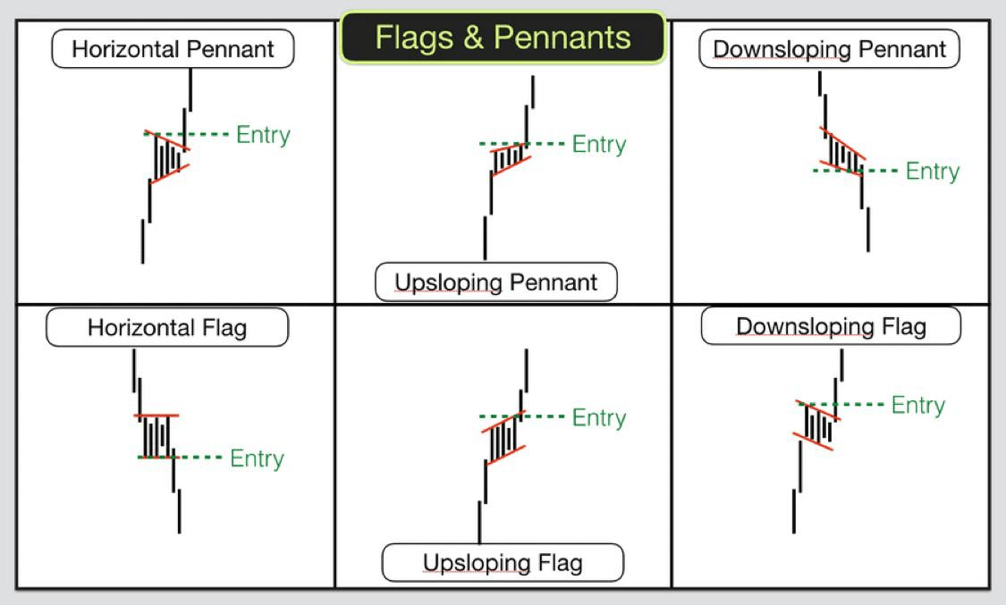 ❖ Bendera dan panji bullish atau bearish adalah pola jangka pendek di grafik kripto