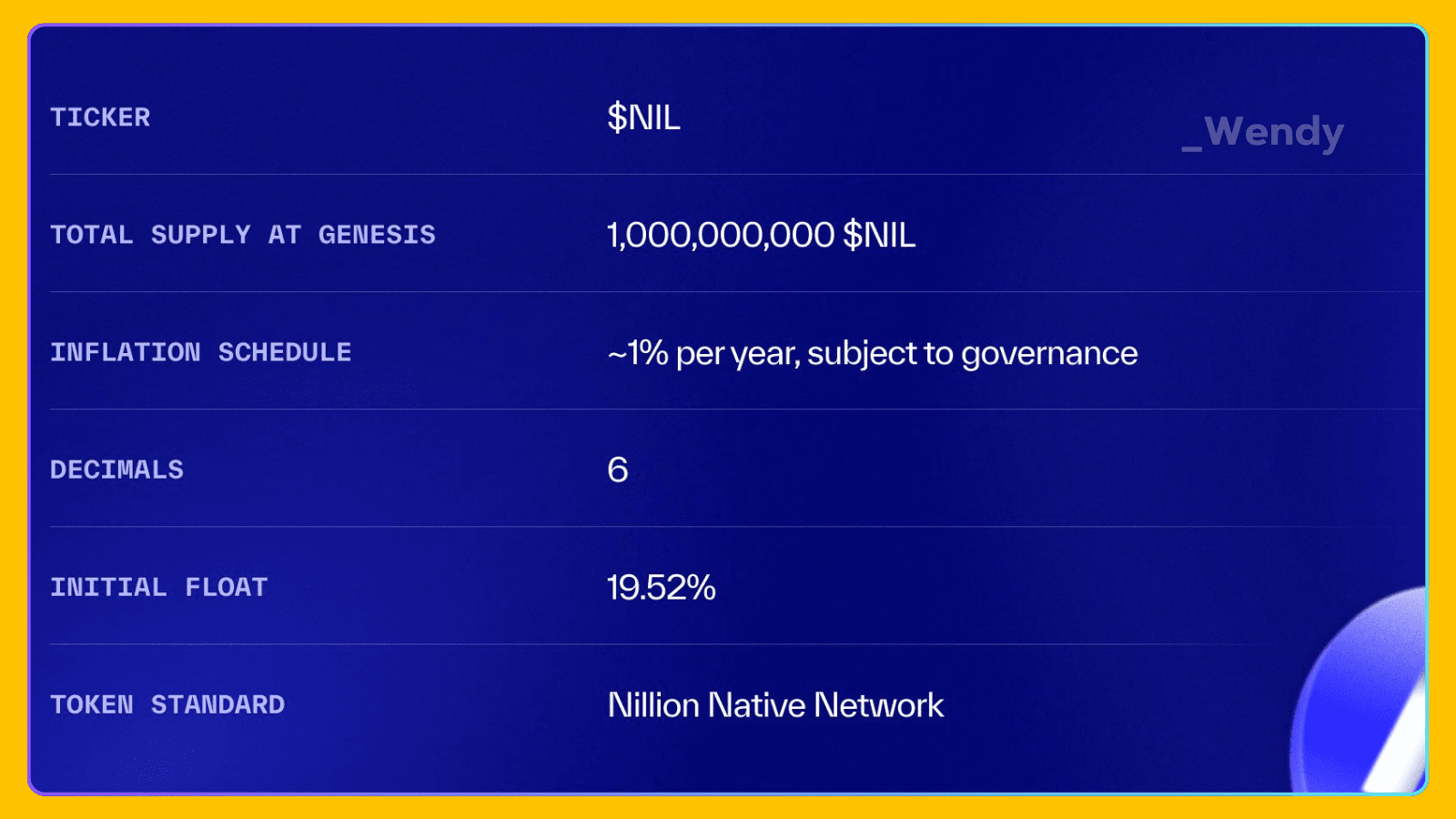 ⇢ Total Pasokan: Total pasokan $NIL pada genesis adalah 1.000.000.000 token, dengan pasokan yang beredar awal sebesar 19,52%.
