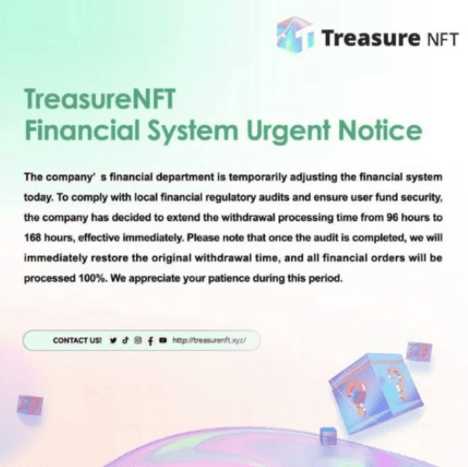 NFT menciptakan jenis penipuan lainnya dengan pengguna aplikasi NFT yang mengatakan bahwa saya memiliki lebih banyak beban penarikan sehingga perusahaan memperpanjang durasi waktu penarikan dari 96 jam menjadi 168 jamš dan kemudian pulang, pengguna hanya menunggu dan masih menunggu untuk menerima jumlah tetapi sial 0 yang masuk ke akun Anda š
