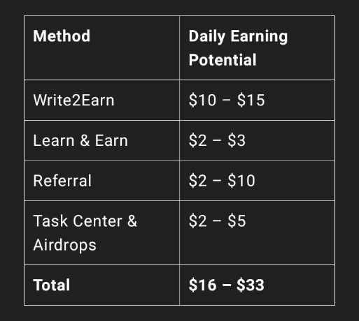 Program Write2Earn Binance memungkinkan pengguna untuk menyumbangkan artikel, ide perdagangan, analisis koin, dan konten edukatif. Jika pos Anda diterbitkan, Anda mendapatkan hingga $10 per artikel, ditambah bonus untuk keterlibatan dan kualitas.
