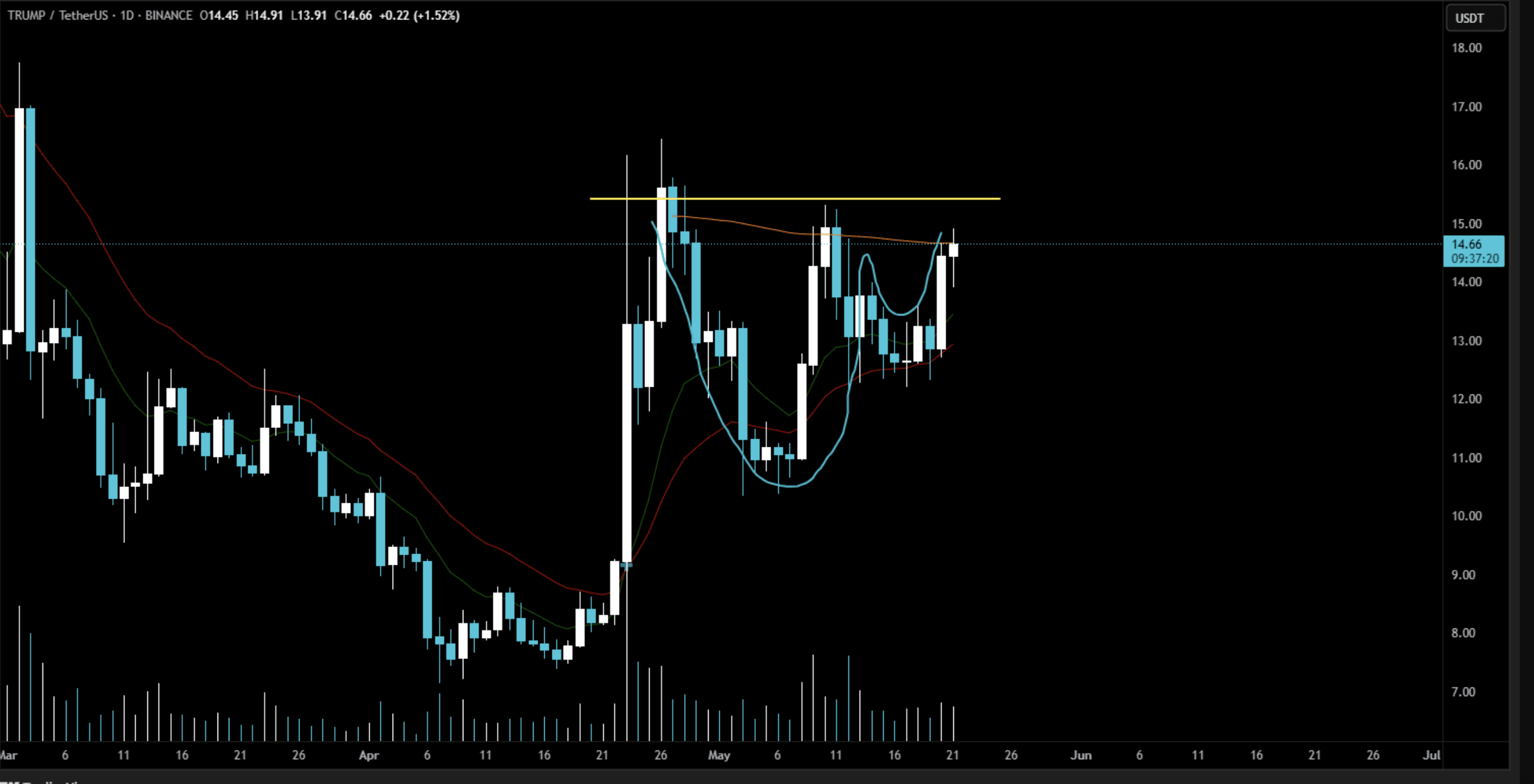 🔶 Harga menguji resistensi di $14.70–$15.00.