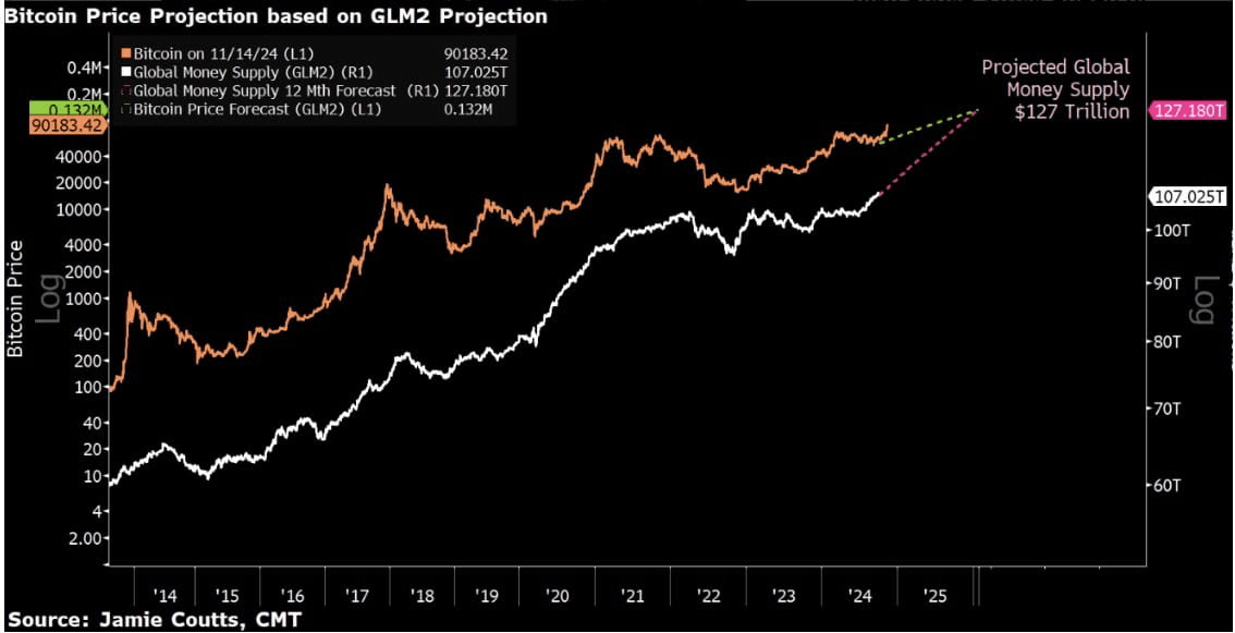 Beberapa ahli teknis mulai menargetkan level berikutnya: 116.000 USD adalah area resistensi terdekat, dan jika berhasil dilalui, area 'nilai wajar' pada tahun 2025 bisa berada di sekitar 132.000 USD, menurut model pertumbuhan dari suplai uang M2 global.