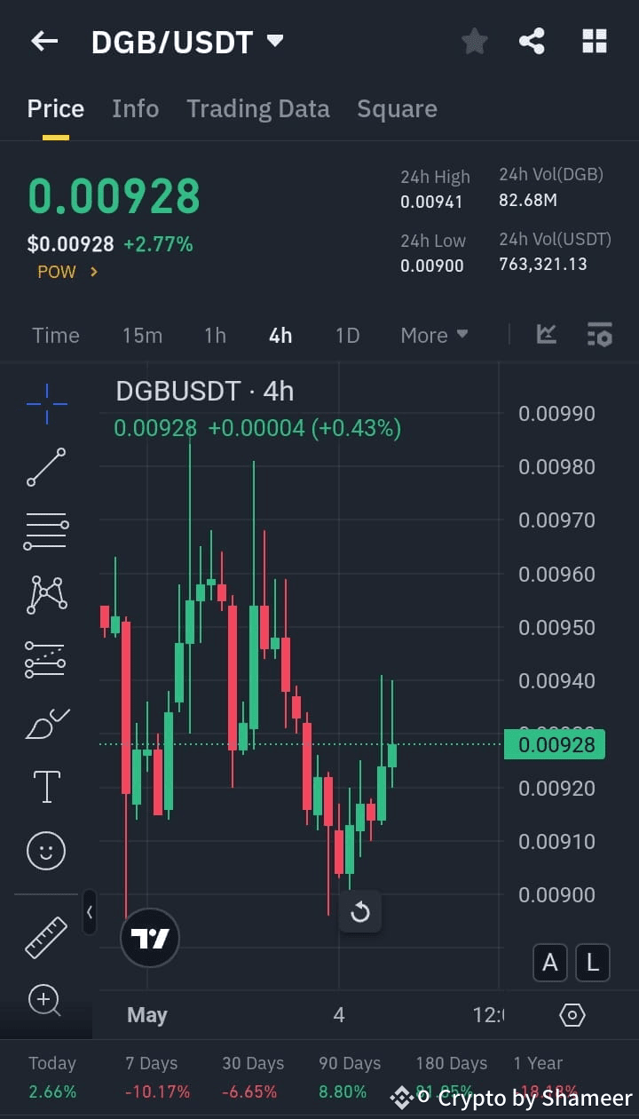 Perhatikan pola breakout di grafik 4 jam dan harian. Cari dukungan di sekitar level kunci seperti $0.008 dan resistensi dekat $0.012. Selalu atur stop-loss dan kelola risiko Anda dengan bijaksana.$DGB
