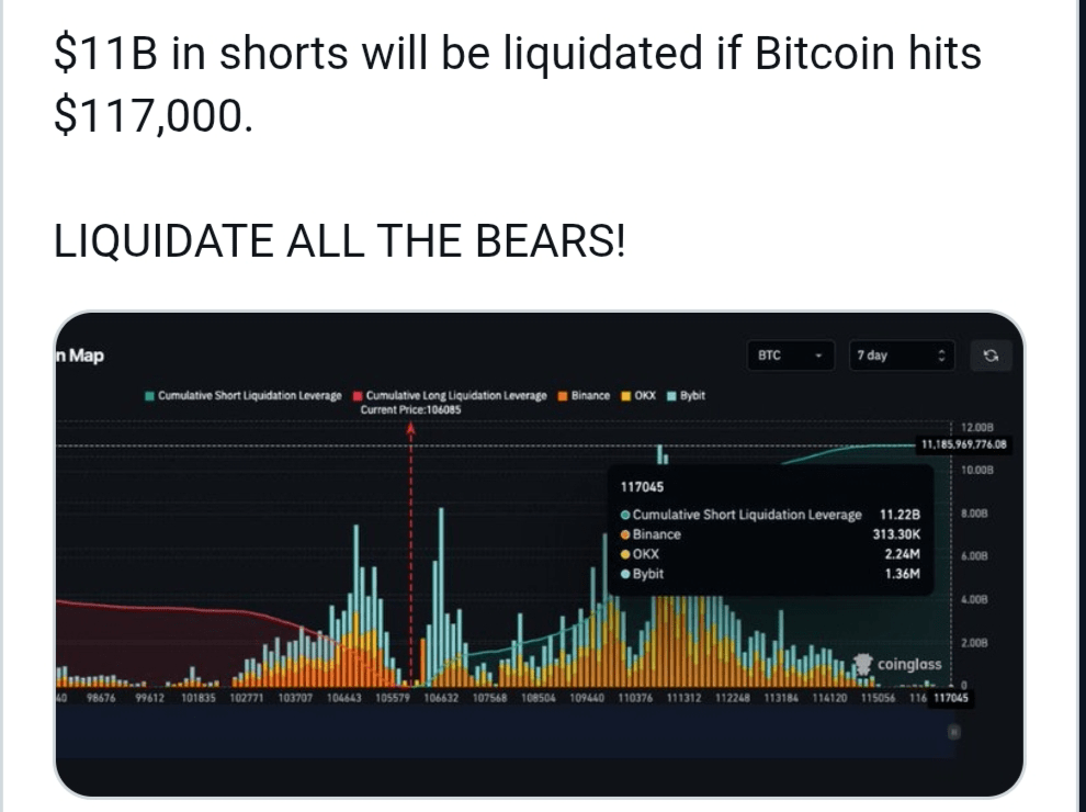 $11B dalam Shorts Menghadapi Likuidasi di $117K Bitcoin