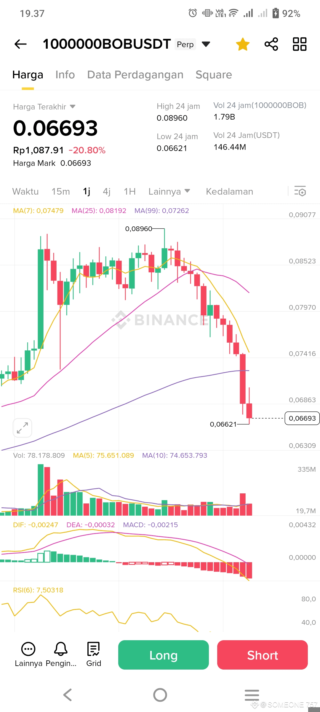 💥"Itu dia masalahnya, Bob!" Budi mengacak-acak rambutnya. "Dulu aku jual karena mikir, 'Ah, ini koin namanya BOB, kayak nama kamu, pasti nggak serius.' Aku mikir ini koin cuma buat lucu-lucuan. Eh, lihat sekarang! Harganya jadi 0.06693, tapi kalau kita lihat grafiknya, dia pernah nyentuh 0.08960!"