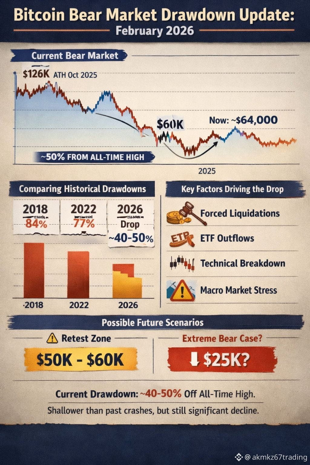 This scale of decline — though large — is shallower in percentage terms than some historical bear markets.$BTC #BTCDowntrend #MarketCorrection #RiskAssetsMarketShock