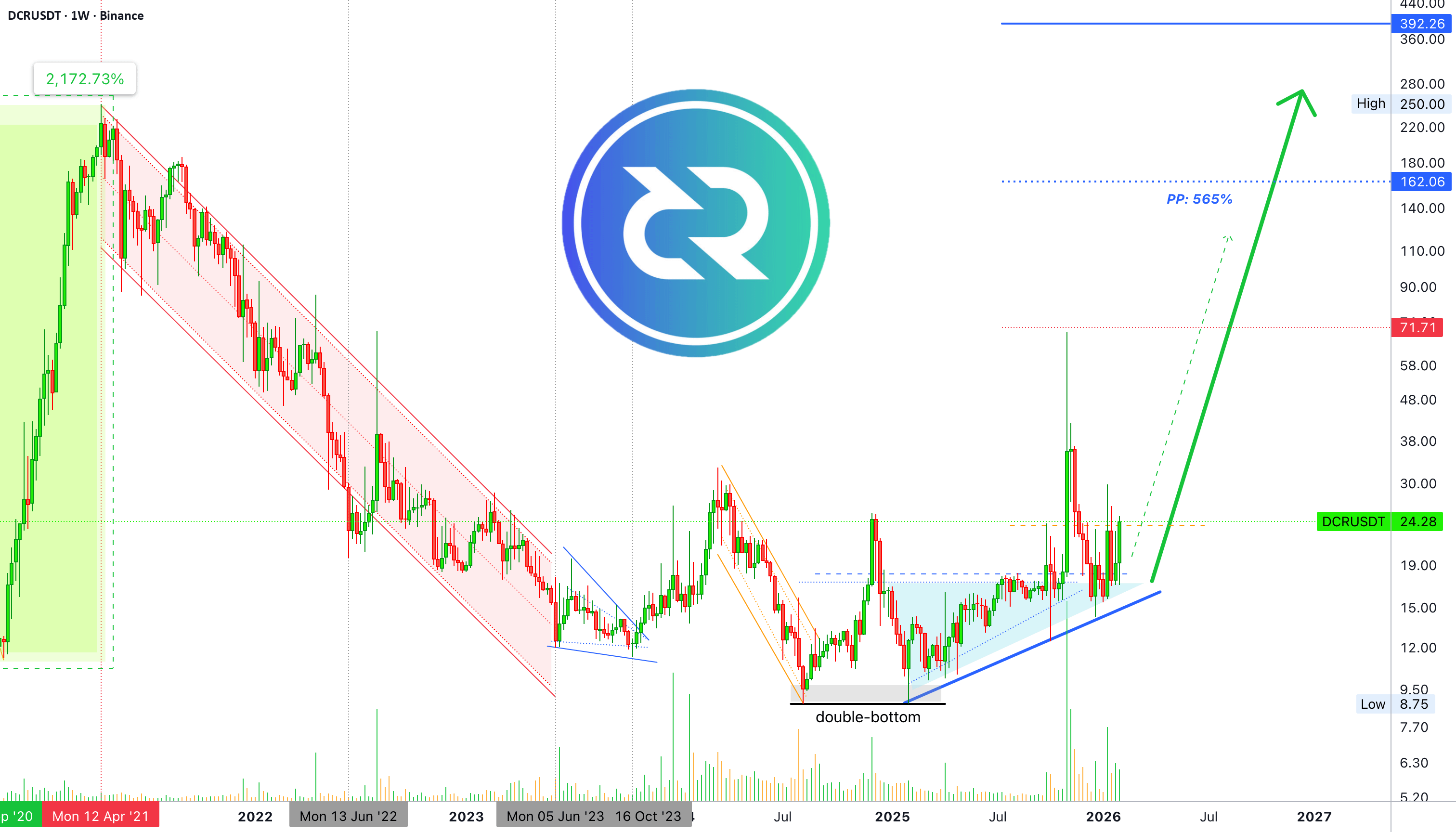 DCRUSDT (Decred) sangat bullish saat ini... Segala sesuatu mengarah ke atas.
