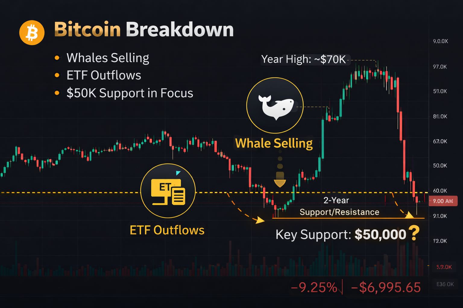 Analysts are now watching key support near $50,000, though concerns remain that further downside is possible. The break of long-term support levels raises the risk of panic selling, even as some believe the move could be a short-term overreaction with a potential partial rebound ahead.