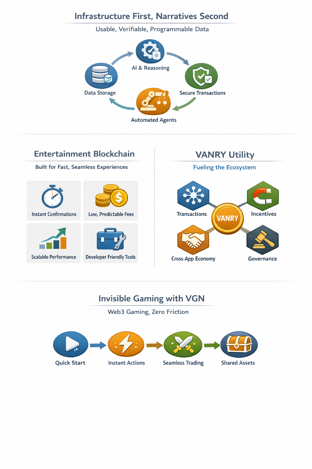 Vanar doesn’t market itself as an “AI chain” or a “gaming chain” in the usual buzzword-heavy way. Instead, it treats AI and data as infrastructurebsomething that must work reliably before it’s ever promoted.