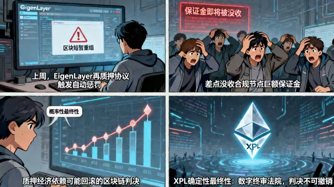 出事了,而且不是小事。就在上周,EigenLayer上一个知名的再质押(restaking)协议,因为其依赖的以太坊主网某个区块的“短暂重组”,系统自动触发了一次惩罚(slashing),差点将几十个完全合规的节点运营者的巨额保证金一刀切没收。尽管最后通过紧急社区干预得以纠正,但这场虚惊暴露了一个足以让所有质押(Staking)和再质押经济参与者脊背发凉的真相:我们价值数千亿美金质押资产的安全,竟然建立在一条可能“事后反悔”的链的“概率性最终”判决之上。