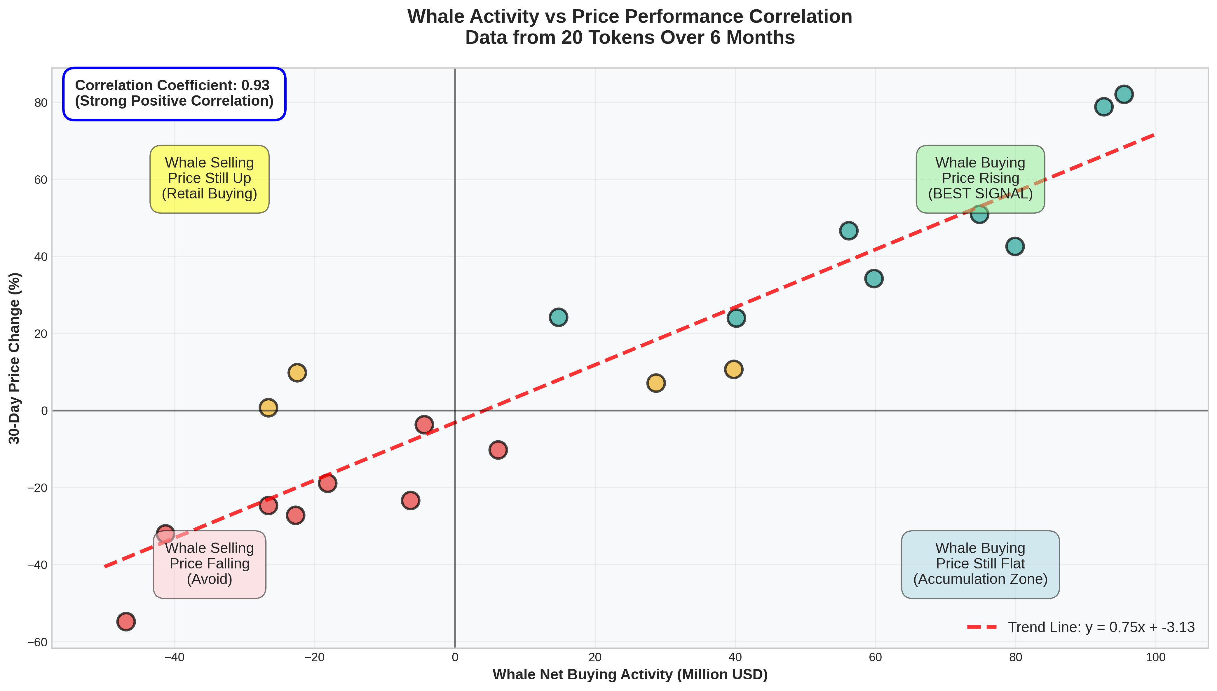 Graph showing strong correlation between whale net buying and subsequent price increases