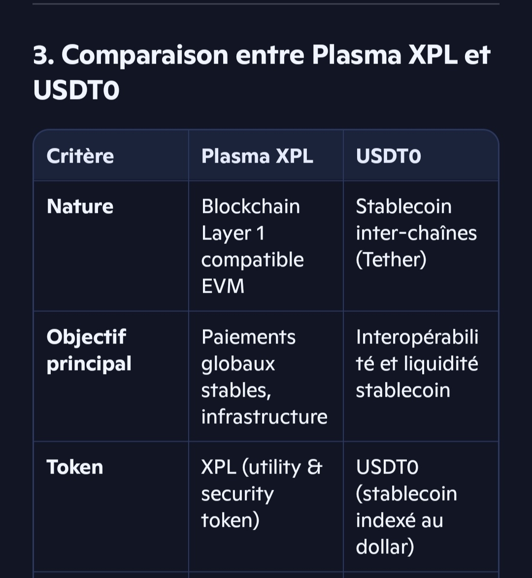 3. Comparaison entre Plasma XPL et USDT0
