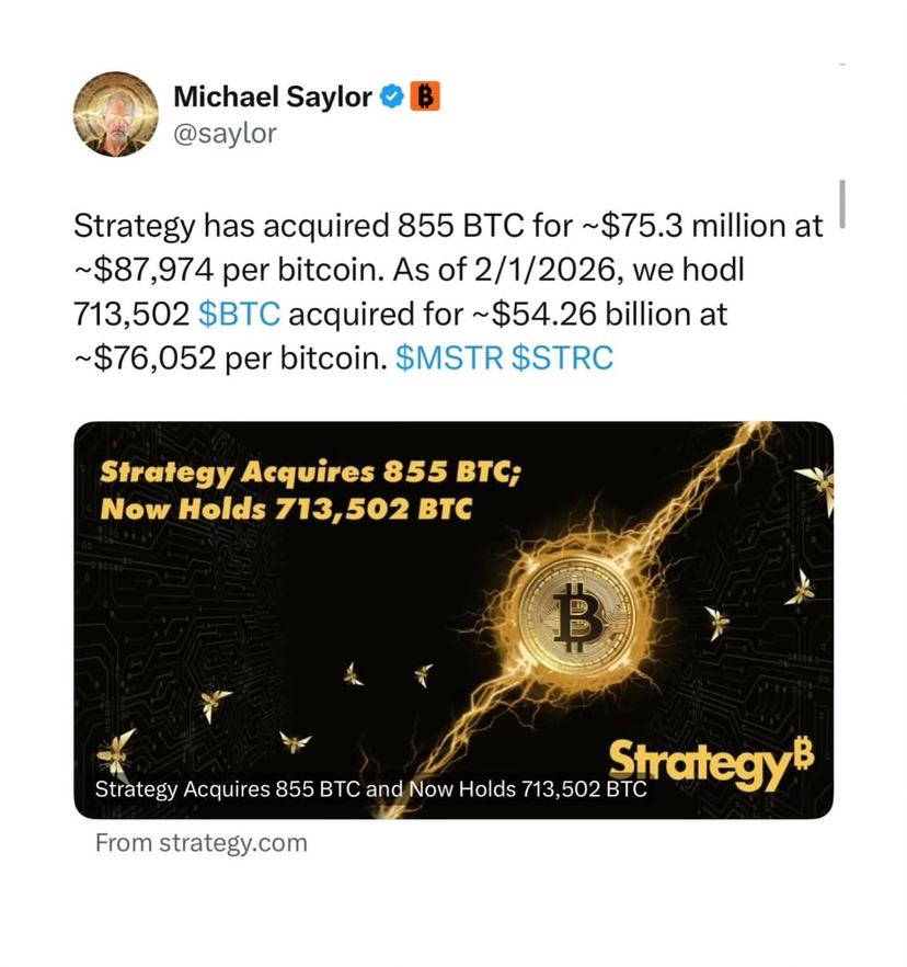 Strategy has acquired 855 BTC for ~ $75.3 million at ~ $87,974