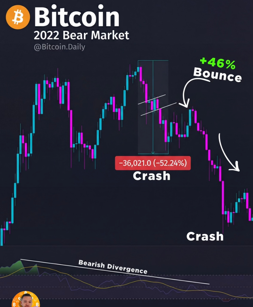 2022: Bitcoin dropped 52% from ATH. Bear flag. Bearish divergence. Then a 46% bounce.
