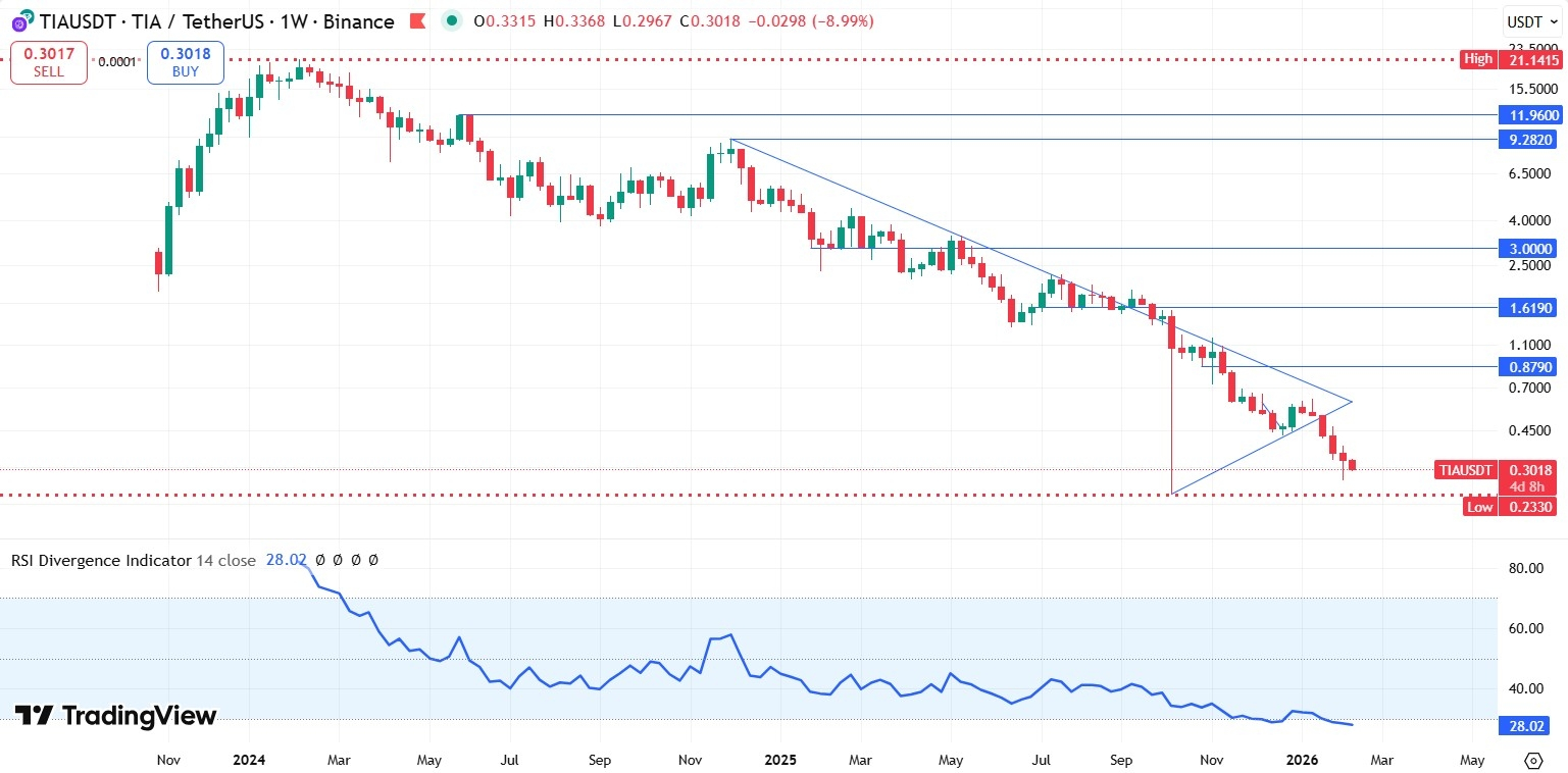 Bullish industry forecasts suggest that TIA’s price could climb strongly if network upgrades succeed and adoption grows. Some analysts project a range around $8–$12 by 2026 based on ecosystem expansion and improvements like faster consensus layers and larger blockspace capacity.