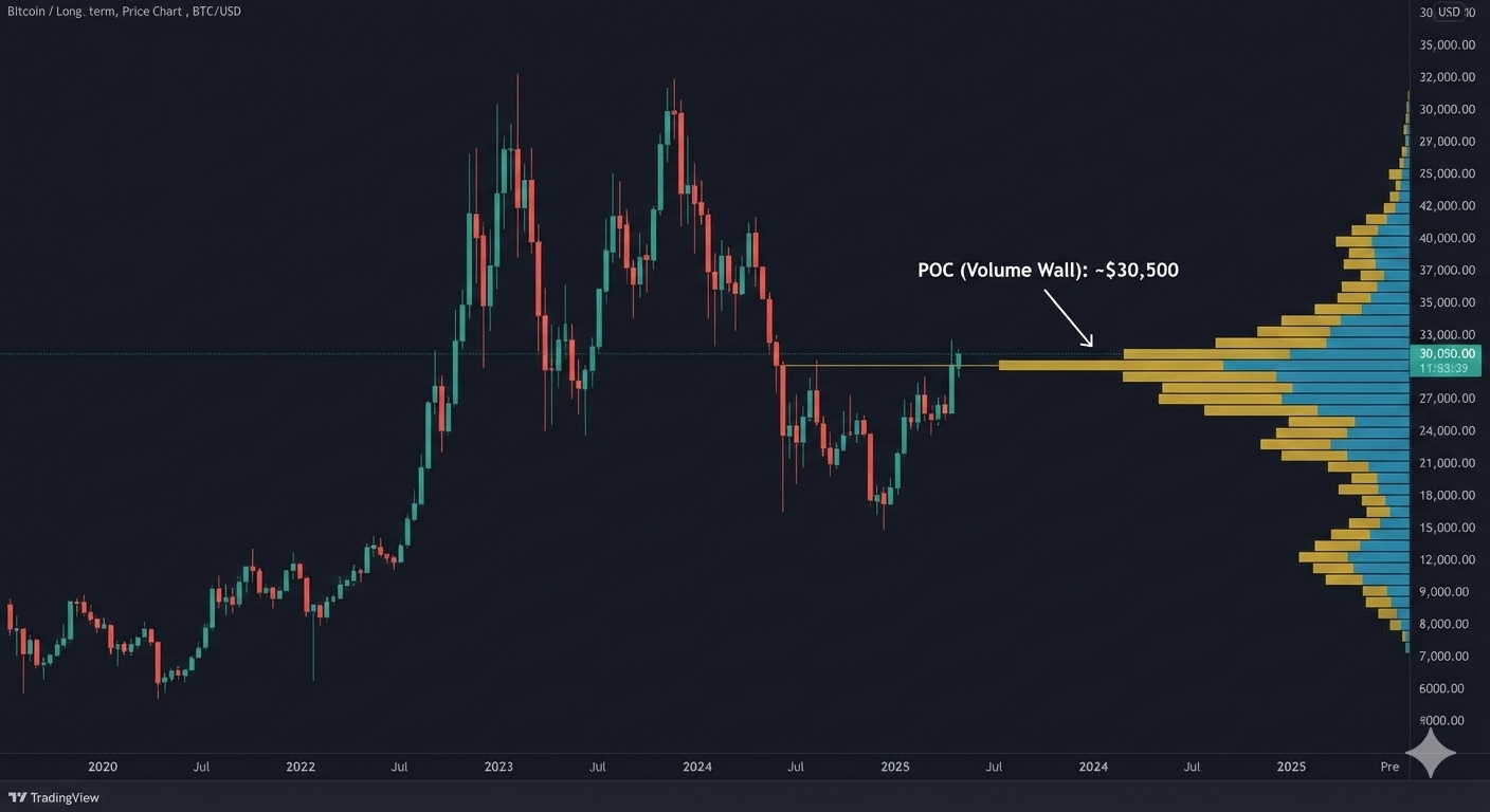 Lihat distribusi volume transaksi selama 3-5 tahun terakhir (Volume Profile), sekitar $30,000 adalah zona kepadatan chip tunggal terbesar dalam sejarah. Ini adalah zona biaya inti sebelum ETF masuk, dan juga “garis Maginot” yang dibangun dengan triliunan dana. Kecuali industri kripto menjadi nol, posisi ini sulit untuk ditembus secara efektif.