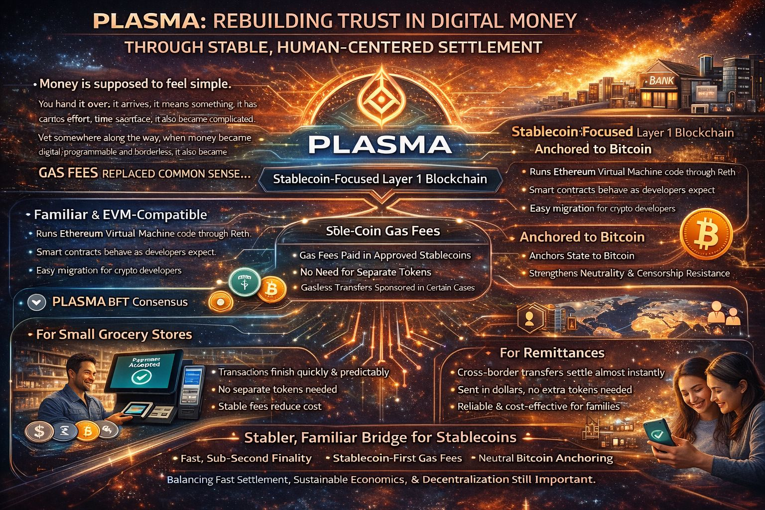 Plasma begins from a place that feels almost tender: the recognition that people are tired of friction. Tired of waiting. Tired of explaining to their parents why they need one token to send another token. Tired of fees that spike without warning. Tired of the quiet anxiety that comes with seeing the word “pending.”