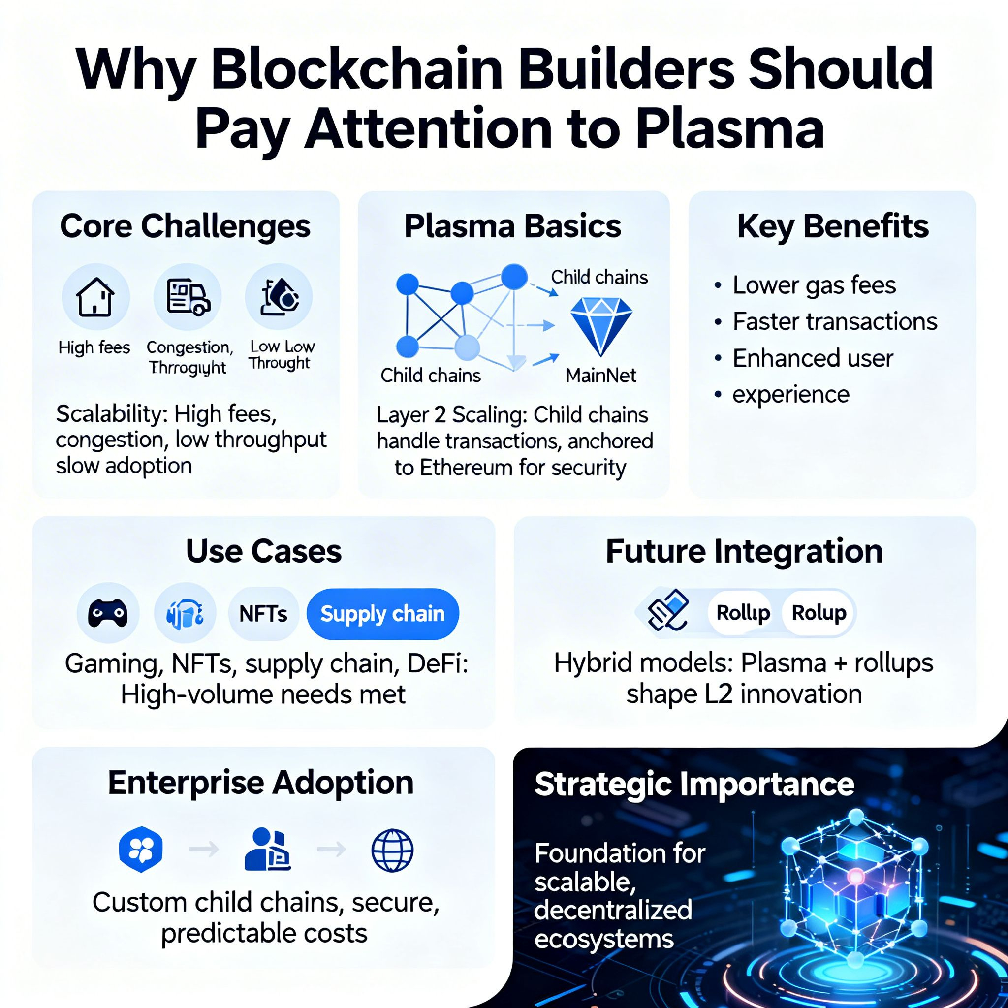 As blockchain technology continues to evolve, scalability remains one of the biggest challenges facing developers and ecosystem builders. High transaction fees, network congestion, and limited throughput have slowed down mass adoption. While solutions like rollups and Layer 2 networks have made progress, Plasma stands out as a powerful and underexplored scaling framework that blockchain builders should not ignore.