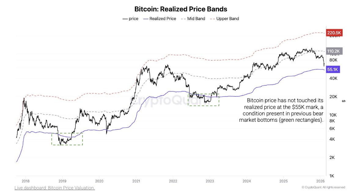 Platform analitik crypto CryptoQuant mengulangi bahwa dukungan harga yang direalisasikan tetap di sekitar $55.000 dan belum diuji.