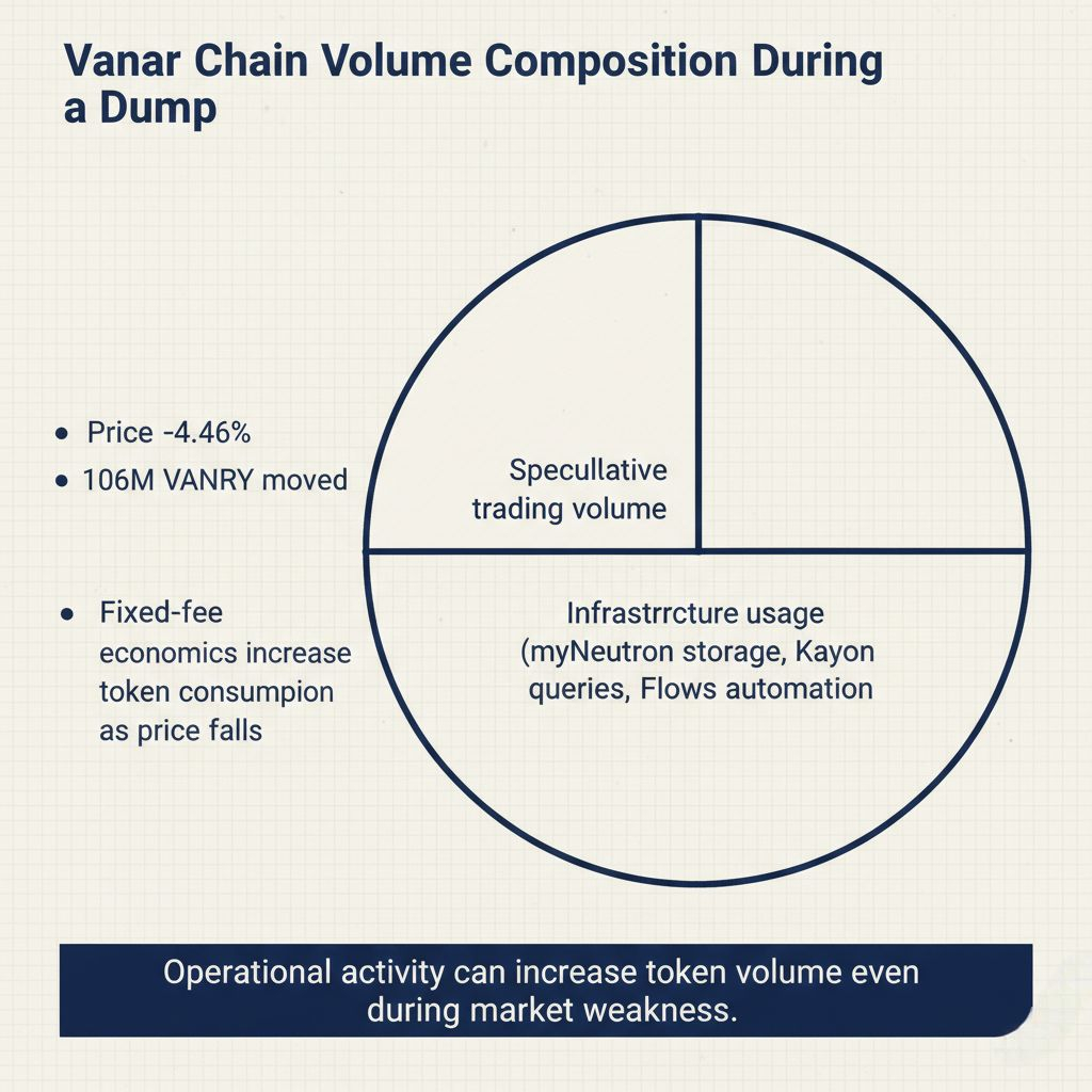 Scale those patterns across all applications using Vanar Chain infrastructure and you see how dumps mechanically increase token volume from infrastructure usage even when operational activity stays constant.