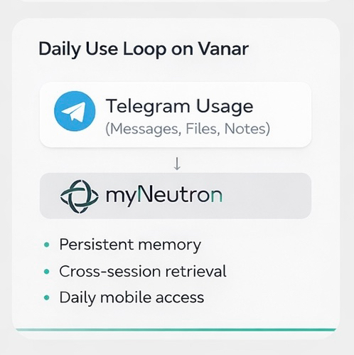 Telegram is where Web3 actually lives — builders, researchers, communities, traders, founders. Decisions, ideas, drafts, screenshots, whiteboard thoughts — they happen in chats, not dashboards. By letting users forward messages, documents, and files directly into myNeutron via a Telegram bot, Vanar closes the gap between “thinking” and “recording.”