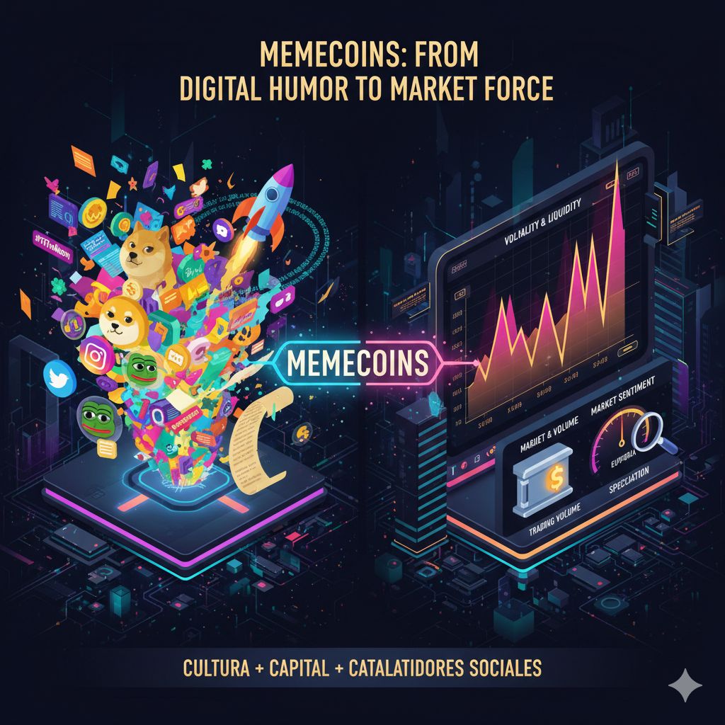 En conclusión, las memecoins representan la cara más social y emocional del mercado digital. Combinan cultura de internet, comunidad y dinámica especulativa en un entorno de alta velocidad. Aunque carezcan de fundamentos tradicionales robustos, su impacto en ciclos de mercado es innegable. Comprender su naturaleza —narrativa, volatilidad y psicología colectiva— es esencial para analizarlas dentro de una estrategia más amplia y equilibrada.