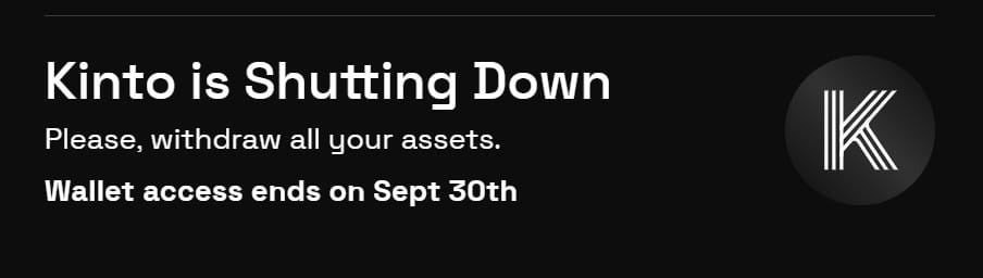 Proyek Ethereum Layer 2 dan pertukaran modular, Kinto akan ditutup setelah serangkaian masalah yang tidak bisa diperbaiki oleh tim. Proyek ini mengatakan akan menghentikan operasi pada 30 September saat menghentikan layanan dan mencoba mengembalikan apa yang bisa kepada pengguna. Keputusan ini mengikuti pelanggaran keamanan besar pada bulan Juli dan upaya untuk mengumpulkan dana darurat yang tidak berhasil.