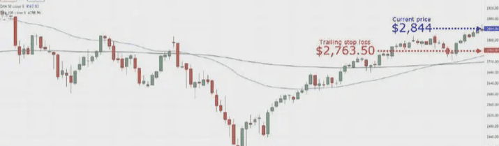 Jika harga saat ini tiba-tiba turun dan ditutup di bawah level trailing stop loss, artinya trailing stop loss kita telah terhapus.