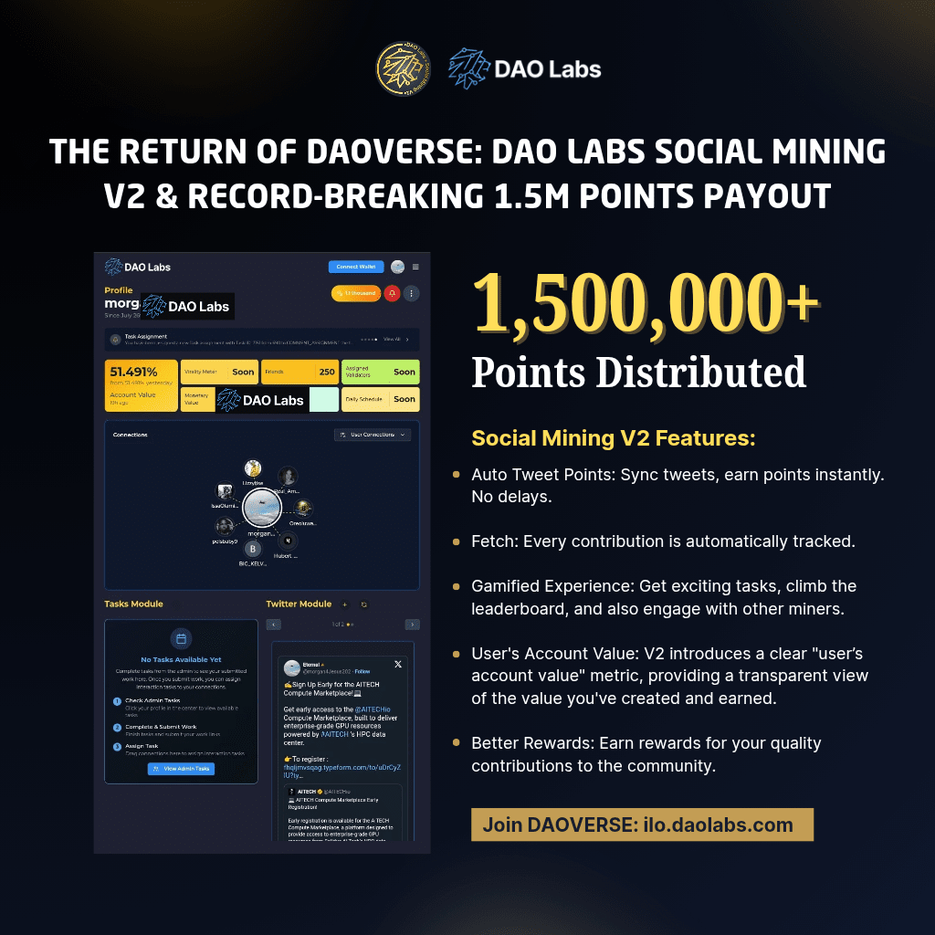 DAO Labs tidak hanya memperbaiki sistem—mereka membangunnya kembali. Berikut adalah apa yang membuat Social Mining V2 menjadi pengubah permainan: