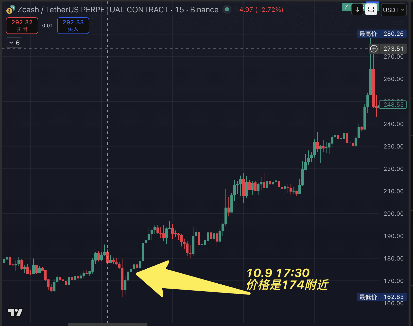 ZEC: Radar diaktifkan pada 10.9 pukul 5:30 sore, bandar mengumpulkan, saat itu harga adalah 174, harga tertinggi saat ini hampir mencapai 298. Kenaikan 71%
