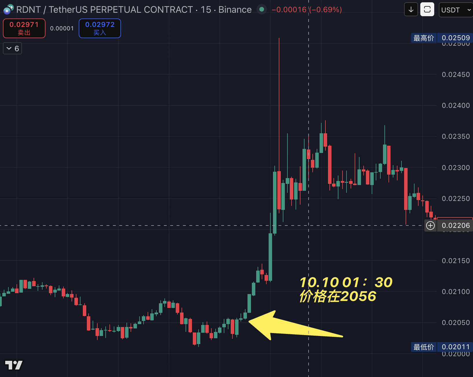 RNDT: 10.10 01:30, radar diaktifkan, bandar mengumpulkan, saat itu harga adalah 0.02056, harga tertinggi saat ini 0.044. Kenaikan 114%