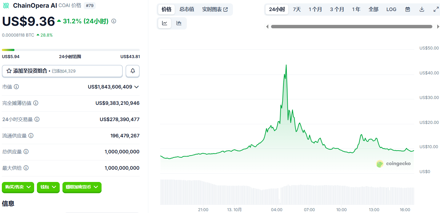 COAI kali ini lebih gila dari 'bertaruh besar' — dalam 7 hari dari 3,8 dolar melonjak menjadi 43,8 dolar, 10 ribu berubah menjadi 220 ribu! Tapi jangan terburu-buru tertawa, grafik 1 jam terjebak di 9,36 dolar tidak naik tidak turun, di atas 16,5 dolar seperti pisau tajam tergantung, di bawah 5,94 dolar adalah 'jurang' rendah sebelumnya!