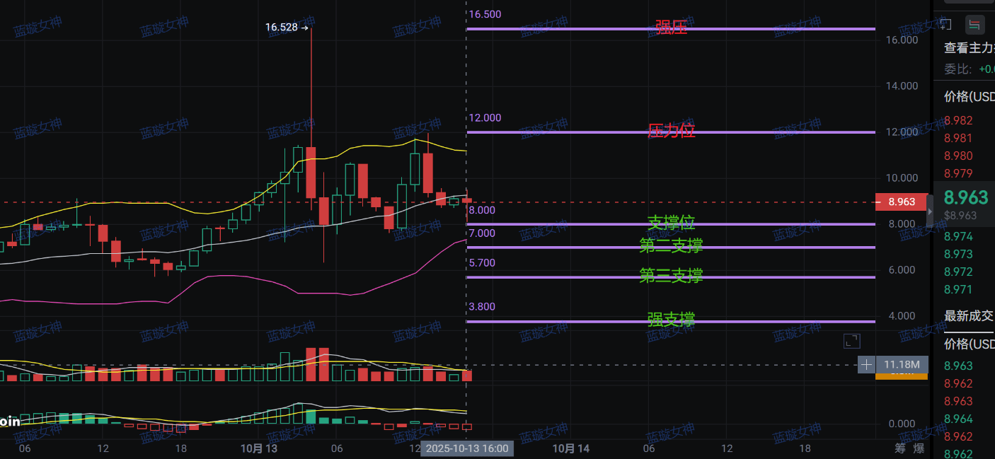 Tekanan kuat di 16,5 dolar: Sekarang 9,36 dolar, jaraknya 7 dolar, tetapi volume tidak ada — tidak ada dana yang keras, jika menerobos adalah 'patah yang salah', paus besar menunggu untuk menjatuhkan pasar, menjebak semua ritel di atas 10 dolar!