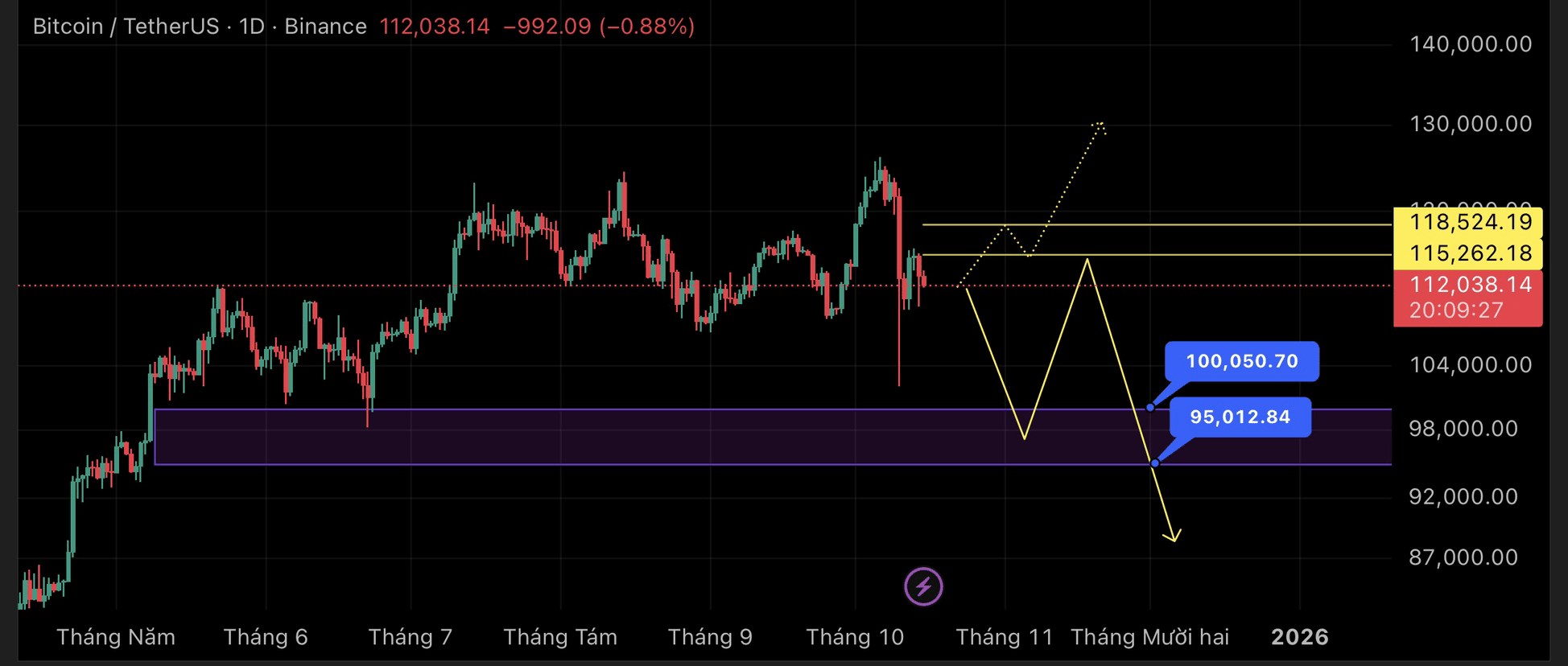 Jika BTC tidak dapat melewati area 115,300 dalam jangka pendek, Jika 126,000 adalah puncak maka diperkirakan BTC akan memasuki siklus penyesuaian jangka menengah jenis A–B–C: